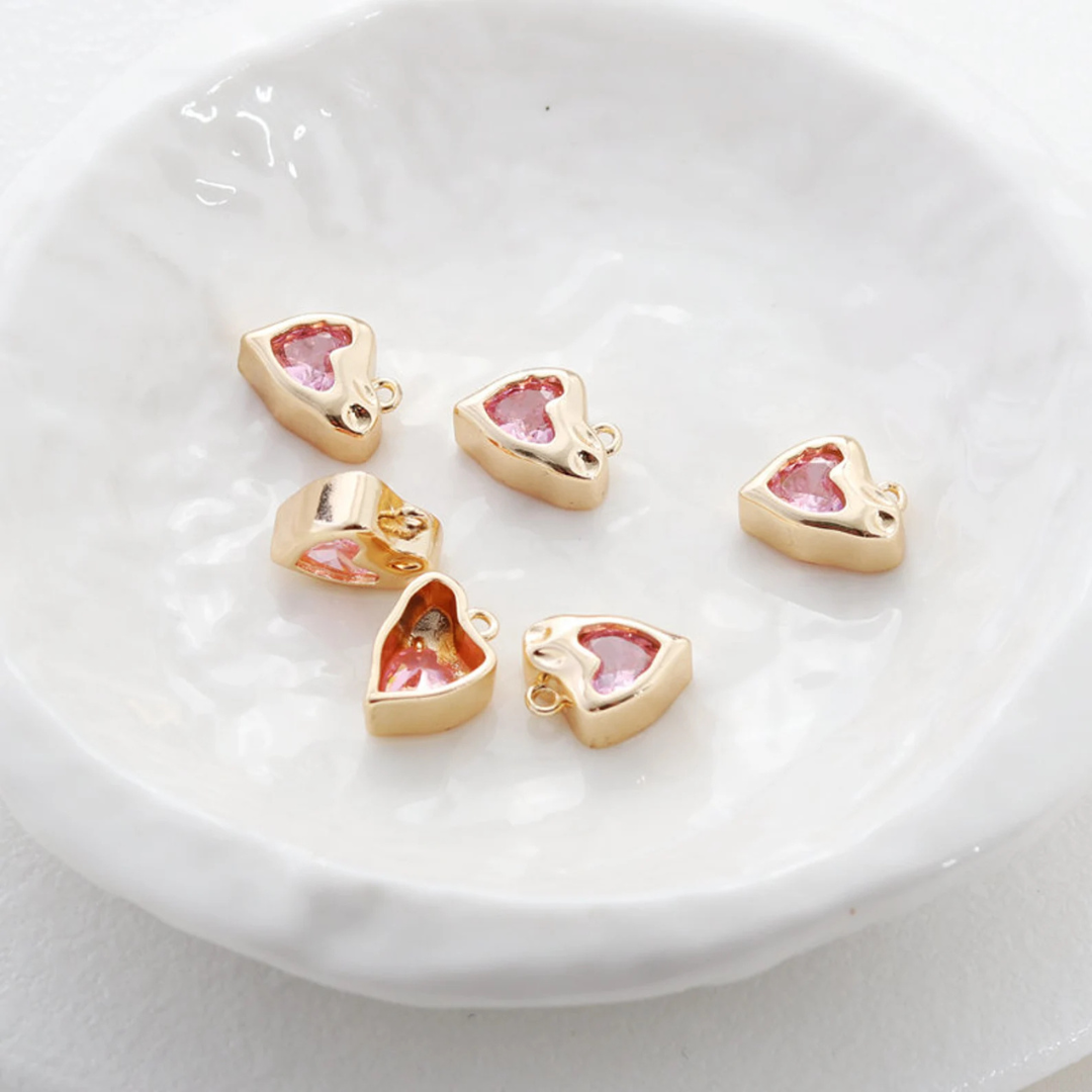 14k gold plated pink dripped heart charm